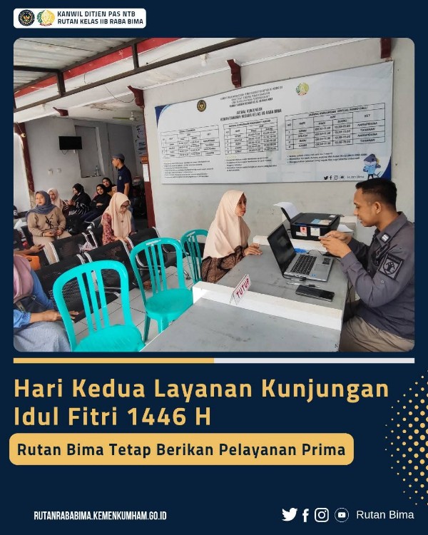 Meskipun jumlah pengunjung lebih ramai dibandingkan hari sebelumnya, petugas Rutan Bima yang didukung oleh tenaga bantuan dari Balai Pemasyarakatan (Bapas) Mataram dan Bapas Sumbawa bekerja sama memberikan pelayanan terbaik bagi keluarga warga binaan.