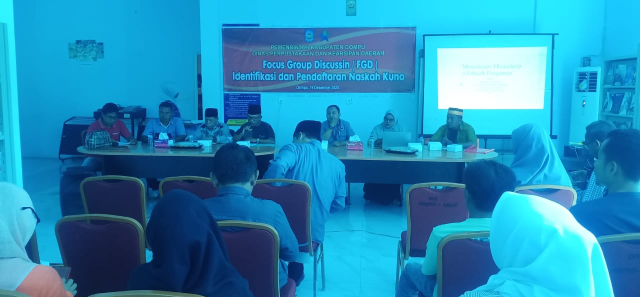 Pada Jumat (19/12/2025) kemarin di Ruang Layanan Perpusda Dompu dilaksanakan Focus Group Discussion (FGD) untuk membahas lebih mengerucut mengenai idenrifikasi dan pendaftaran naskah kuno ini.