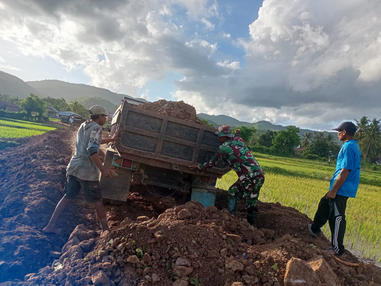 Puluhan warga dari berbagai kalangan bahu-membahu bersama personel Koramil 1608-07/Monta melaksanakan pekerjaan fisik, mulai dari pembersihan lokasi, pengangkutan material, hingga pembukaan akses jalan. Kekompakan dan semangat gotong royong yang terjalin menjadi cerminan kuatnya kemanunggalan TNI dengan rakyat.