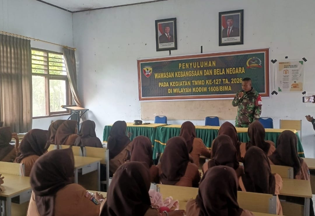 Lensa Pos NTB, Monta Bima – Program nonfisik TNI Manunggal Membangun Desa (TMMD) ke-127 Tahun Anggaran 2026 Kodim 1608/Bima terus digencarkan. Salah satunya melalui kegiatan penyuluhan wawasan kebangsaan dan bela negara yang dilaksanakan di SMAN 2 Monta, Kecamatan Monta, Kabupaten Bima, Jumat (13/2/2026).