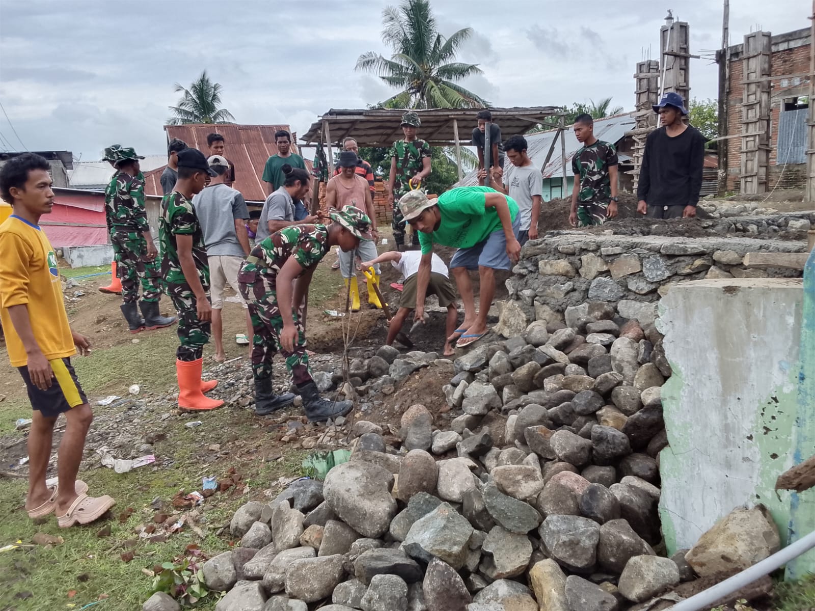 Semangat kebersamaan tampak jelas saat personel Satgas TMMD dan warga bahu-membahu melakukan penggalian, pencampuran semen, hingga pemasangan batu pondasi. Pembangunan MCK ini menjadi kebutuhan mendesak guna menunjang kebersihan dan kenyamanan jamaah Masjid Ainun Yaqin, khususnya dalam berwudhu.
