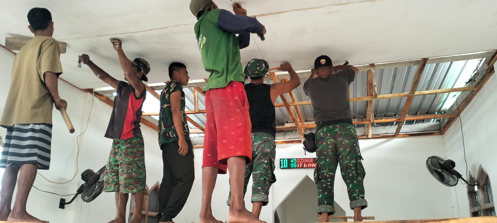 Pekerjaan ini merupakan tahap lanjutan dari rehabilitasi mushollah yang menjadi salah satu sasaran fisik TMMD tahun ini. Dengan luas plafon mencapai 78 meter persegi, pengerjaan dilakukan secara teliti agar hasilnya rapi dan tahan lama.