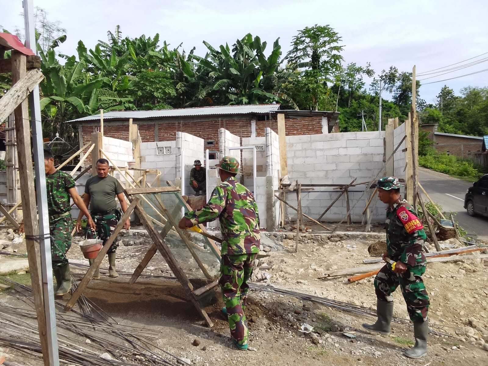 kesungguhan para prajurit yang turun langsung ke lapangan, bekerja bersama mereka tanpa pamrih. MCK Masjid Ainun Yaqin yang sedang dibangun kelak akan menjadi sarana ibadah dan fasilitas sanitasi yang layak bagi warga, sekaligus simbol persatuan antara TNI dan rakyat.