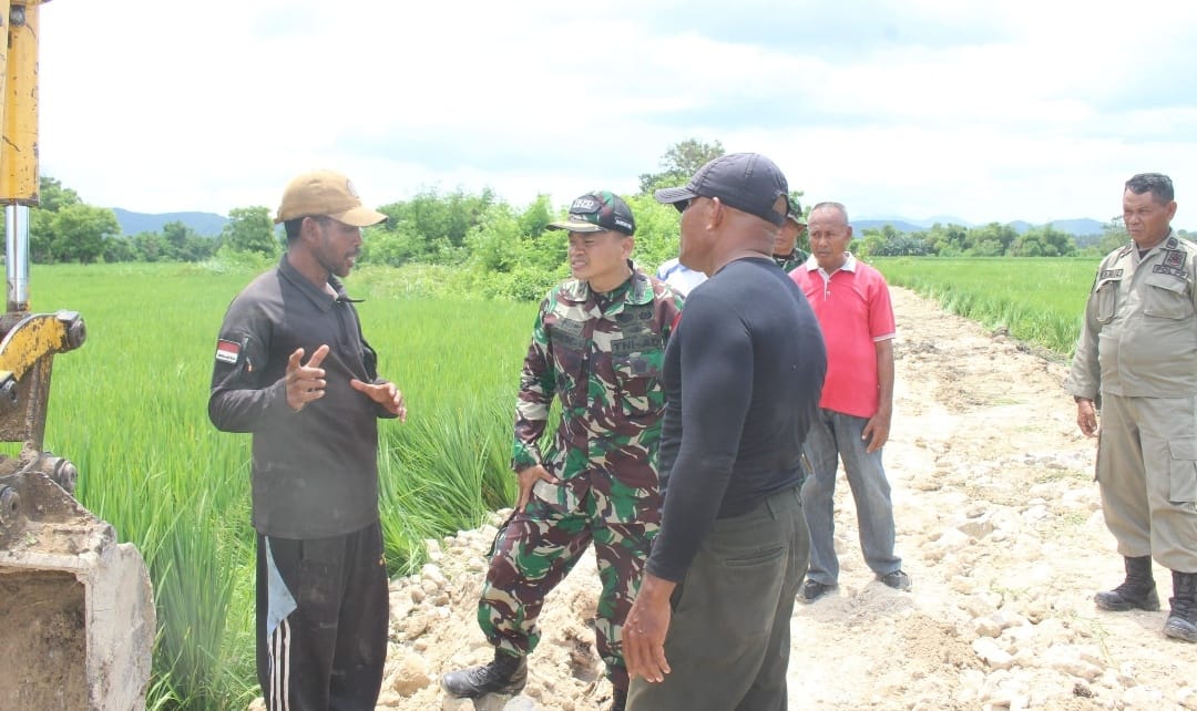Selanjutnya di Desa Sondo, Dandim melihat langsung perkembangan pembukaan jalan tani yang hampir rampung dari target sepanjang 700 meter. Infrastruktur tersebut diharapkan dapat mempermudah akses masyarakat menuju lahan pertanian dan mendukung aktivitas ekonomi warga.