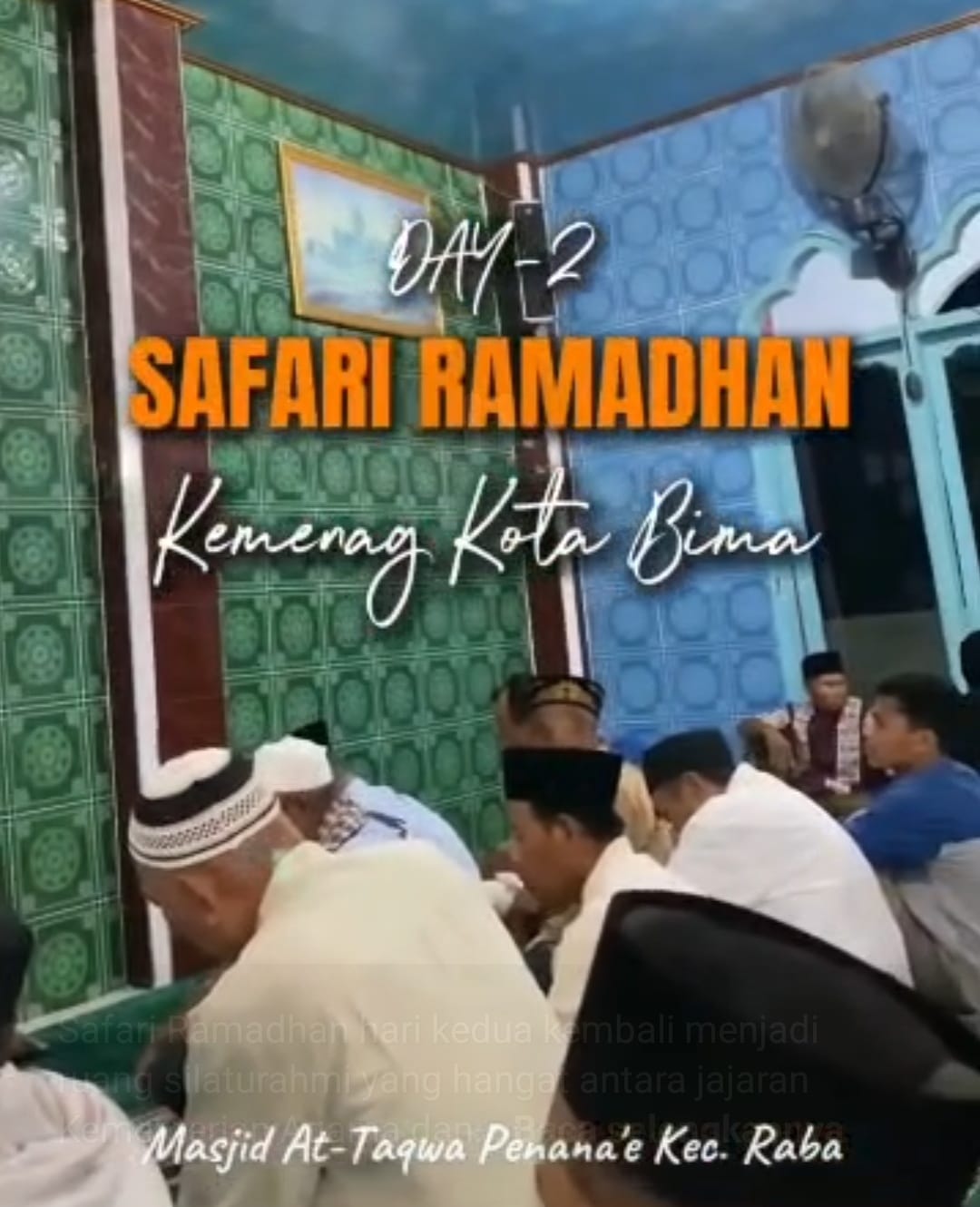 Lensa Pos NTB, Kota Bima — Kegiatan Safari Ramadan Kementerian Agama (Kemenag) Kota Bima memasuki hari kedua dengan mengunjungi Masjid At-Taqwa Penana’e, Kecamatan Raba. Kegiatan ini menjadi bagian dari rangkaian kunjungan pembinaan serta ibadah bersama masyarakat selama bulan suci Ramadan, sabtu (7/3/2026).