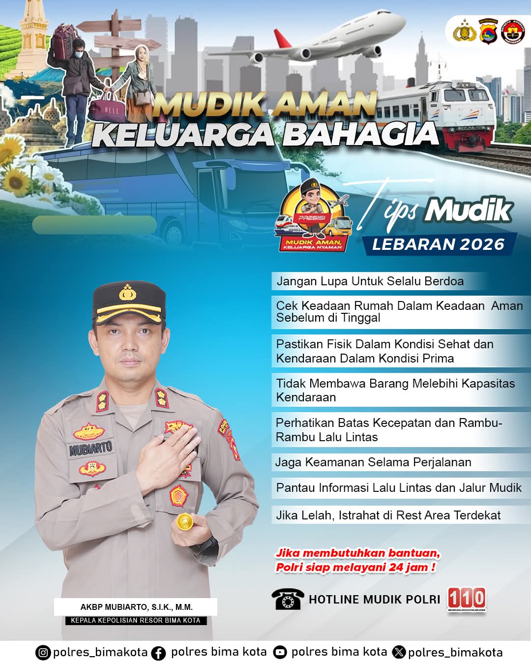 Untuk itu, Polres Bima Kota membagikan sejumlah tips mudik aman bagi masyarakat, di antaranya: