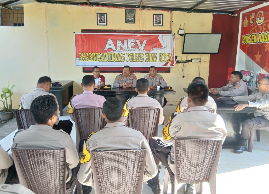 Kota Bima, Lensa Pos NTB – Kapolres Bima Kota melalui Kasat Binmas, IPTU Agus Supriyanto, memimpin langsung kegiatan analisa dan evaluasi (Anev) bersama jajaran Bhabinkamtibmas di wilayah hukum Polsek Rasanae Barat, Sabtu (11/4/2026). Kegiatan yang berlangsung di Mapolsek Rasanae Barat tersebut turut dihadiri Kapolsek Rasanae Barat, AKP Suratno, dan 16 Bhabinkamtibmas wilayah hukum Polsek Rasanae Barat.
