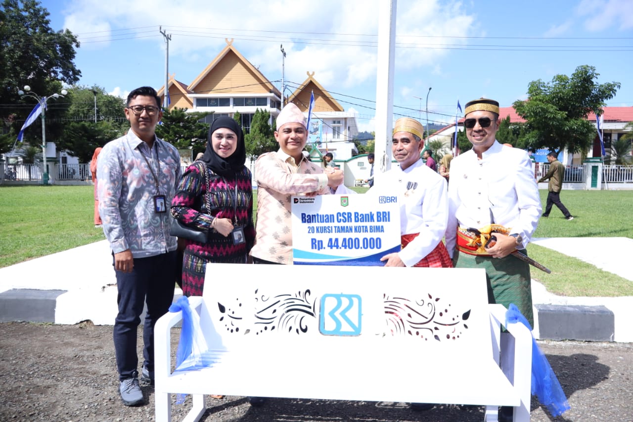 Kota Bima, Lensa Pos NTB – Dalam rangka menyukseskan peringatan Hari Ulang Tahun (HUT) ke-24 Kota Bima, Bank Rakyat Indonesia menyalurkan bantuan Corporate Social Responsibility (CSR) berupa 20 unit kursi taman yang dimanfaatkan pada pelaksanaan upacara di halaman Kantor Wali Kota Bima, Jumat lalu (10/04/2026).