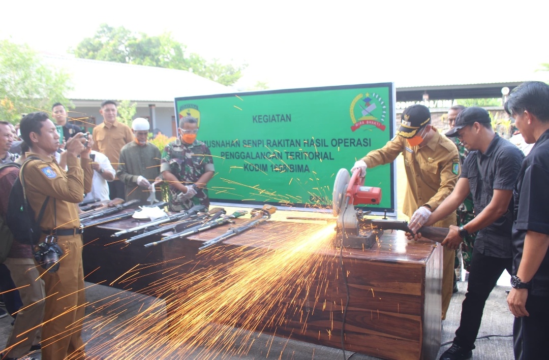 Usai sesi foto bersama, proses pemusnahan dilakukan secara simbolis oleh Wakil Bupati Bima, kemudian dilanjutkan oleh para tamu undangan lainnya. Seluruh senjata api rakitan tersebut dimusnahkan di lokasi dengan pengamanan ketat.Pemusnahan ini merupakan tindak lanjut dari operasi teritorial yang dilaksanakan Kodim 1608/Bima sepanjang tahun 2025.