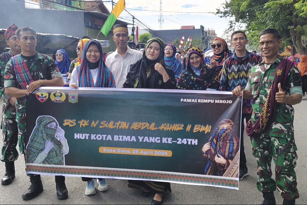 Kota Bima, Lensa Pos NTB – Rumah Sakit Angkatan Darat (RSAD) TK IV Sultan Abdul Kahir Bima turut ambil bagian dalam kemeriahan Pawai Rimpu Mantika 2026 yang digelar Sabtu (25/4/2026).