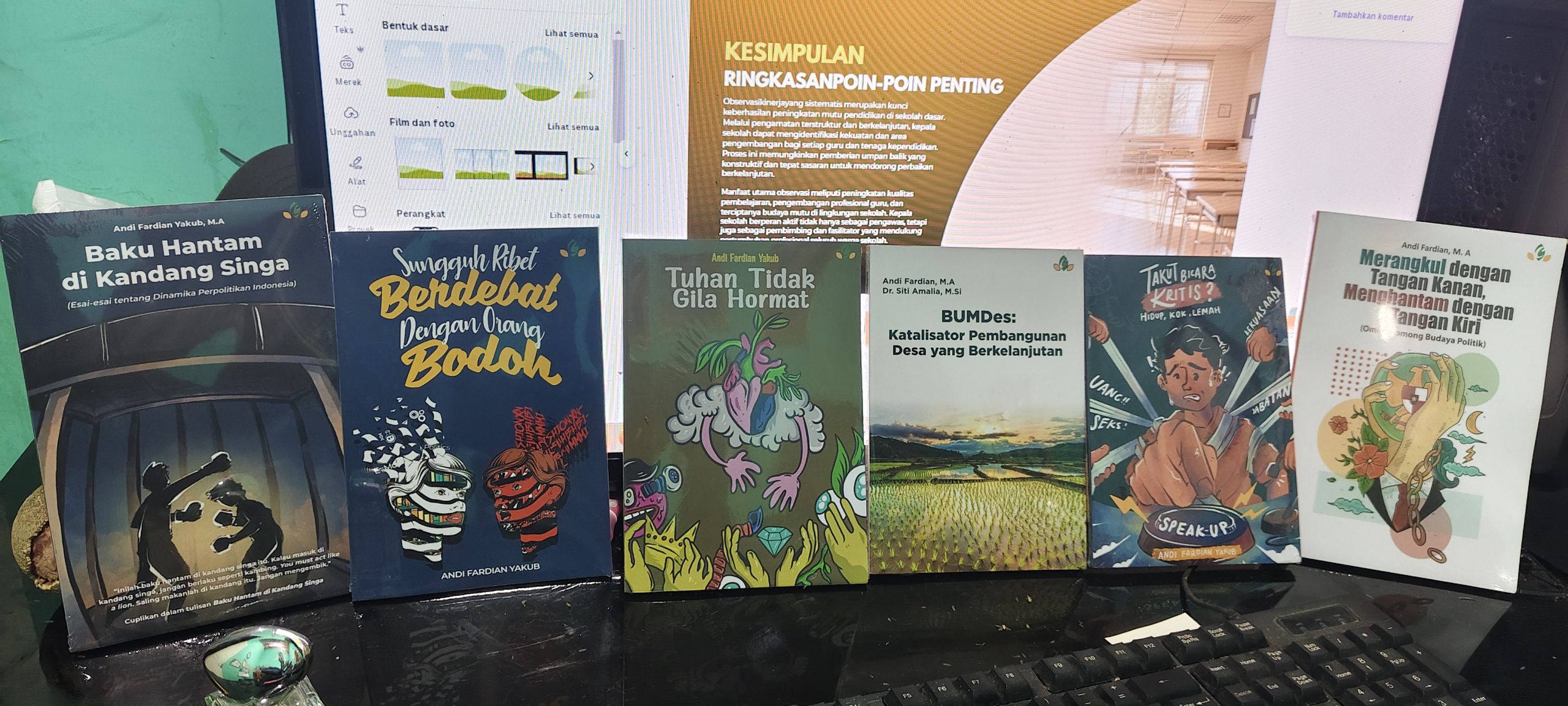 Buku-buku tersebut merupakan kumpulan esai yang ditulis dalam rentang waktu 2019 hingga 2024, mencerminkan konsistensi penulis dalam merawat tradisi berpikir kritis dan budaya literasi.