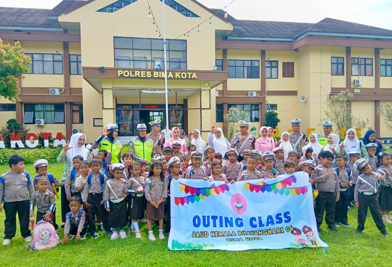 Kota Bima, Lensa Pos NTB – Upaya menanamkan kesadaran tertib berlalu lintas sejak usia dini terus dilakukan Satlantas Polres Bima Kota. Kali ini, melalui kegiatan edukasi dalam rangka outing class PAUD Kemala Bhayangkari 06 Kota Bima, Rabu (29/4/2026), puluhan siswa diperkenalkan langsung dengan dunia lalu lintas secara menyenangkan dan edukatif.