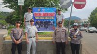 Jasa Raharja Cabang Bima Bersama Satlantas Pasang Spanduk Himbauan di Titik Rawan Kecelakaan