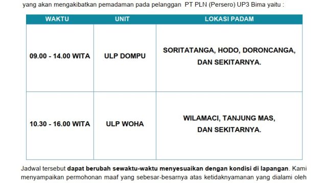 Lensa Pos NTB, Bima — PT PLN (Persero) melalui Unit Pelaksana Pelayanan Pelanggan (UP3) Bima […]